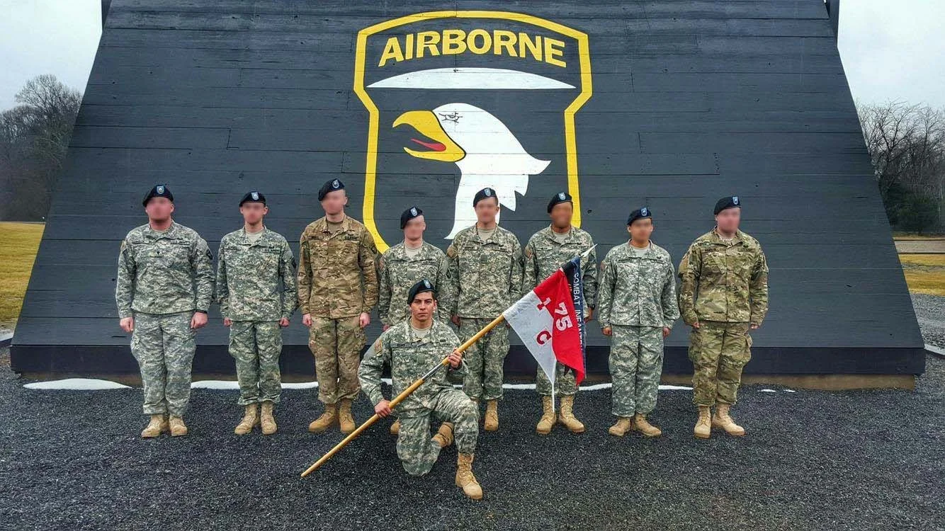 M. Elias, a former Explorer, center, went on to serve his country in the U. S. Army. He is pictured here at Basic Training at Ft. Campbell, KY.